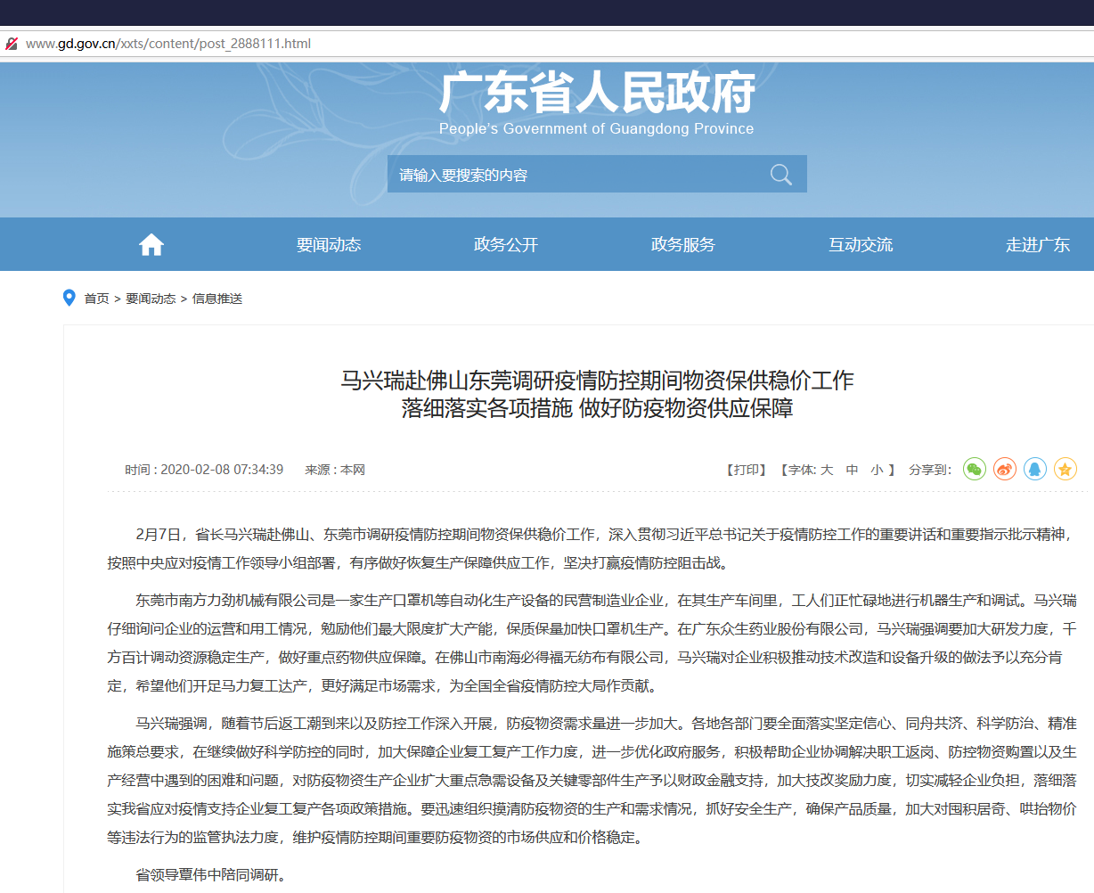 牢記省長囑托,不負使命責任--南方力勁全力保障口罩制造設備生產