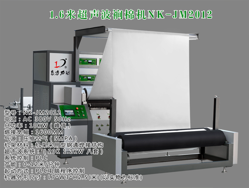 機器外形尺寸:L7*W3.8*H2.5(米)(以實物為標準)東莞市南方力勁機械有限公司,是一家擁有多項專利技術的高新科技企業。公司自成立以來,以市場為導向,引進人才和技術,加強技術交流與合作,歷時多年的科研開發與技術攻關,研發出了新款超聲波縫合設備——超聲波裥棉機,帶動超聲波裥棉機行業的發展。 超聲波裥棉機是利用高頻率振蕩由焊頭將聲波傳送至工作物熔接面,使工作物分子產生摩擦,達到布料與布料、布料與化纖棉、塑料薄膜與塑料薄膜等材料,面料和噴膠棉、無紡布、海棉等材料的熔接,從而完成焊接。