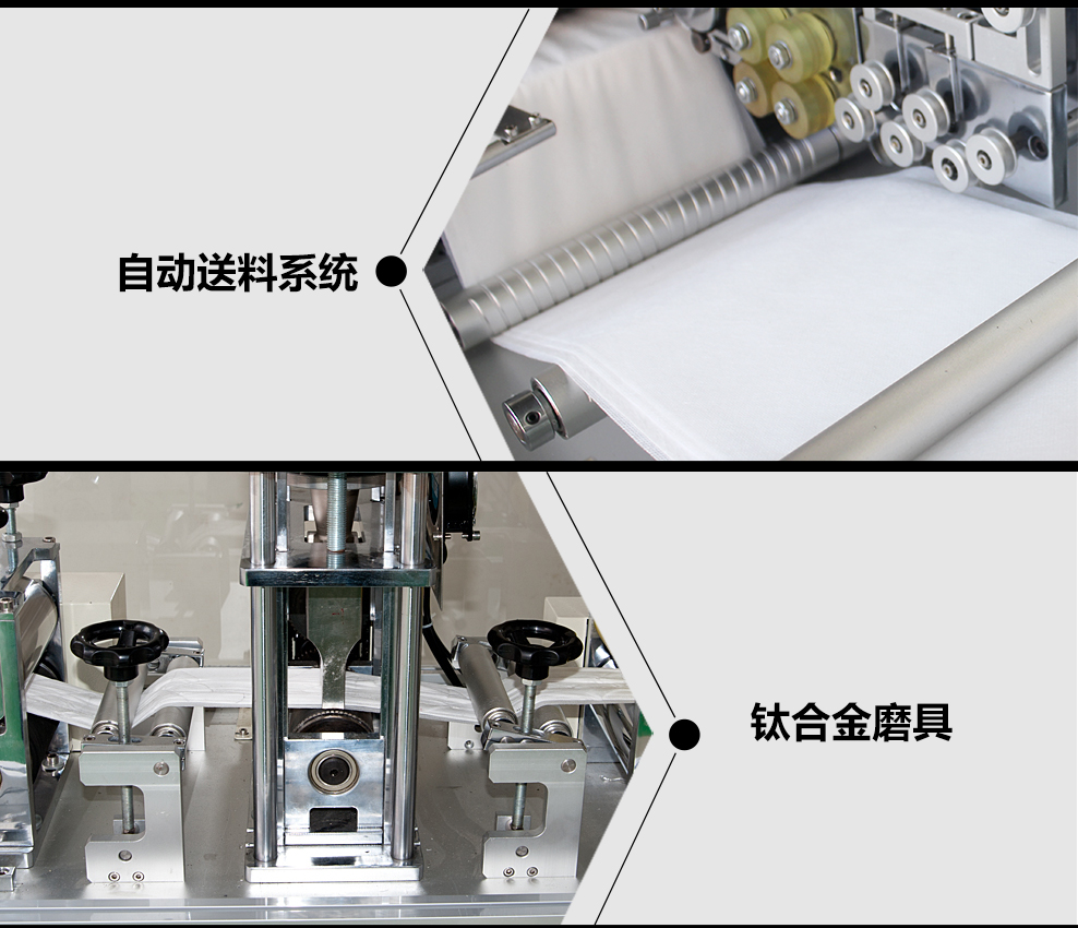 在大多數口罩機械廠家使用鋁合金的時候,南方力勁口罩機已經提供并且積極的倡導客戶使用鈦合金模具,因為相對于鋁合金的易氧化、易爆裂,不適合長時間的趕貨操作、使用壽命短等缺點,鈦合金的優點顯而易見: