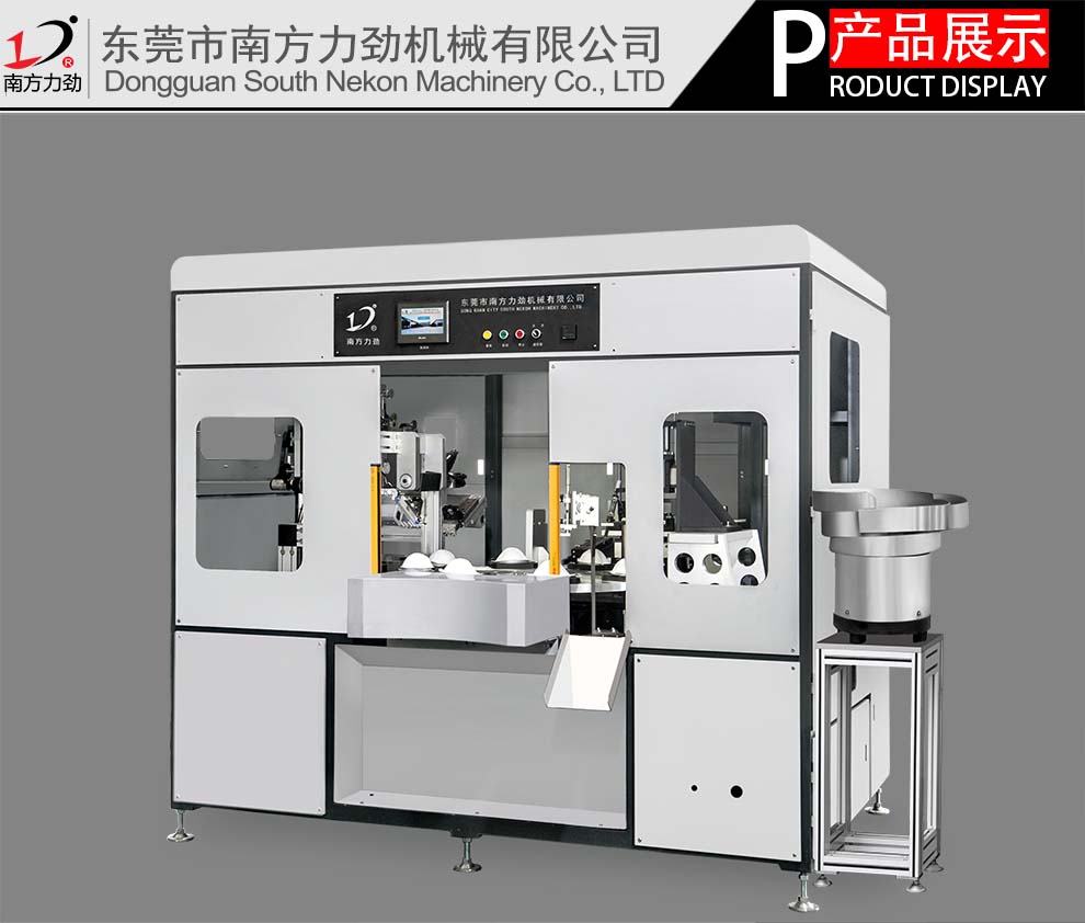 南方力勁全自動杯型口罩裝配機使用旋轉工站式組裝。可同時完成耳帶成型及耳帶焊接、鼻梁條沖切成型及焊接、呼吸閥自動裝配焊接。可以省去3-5個人工,每分鐘可生產口罩20-25個,采用PLC控制系統,觸摸屏設置,操作簡單快捷,可單機使用,也可聯動上工位機一起工作。